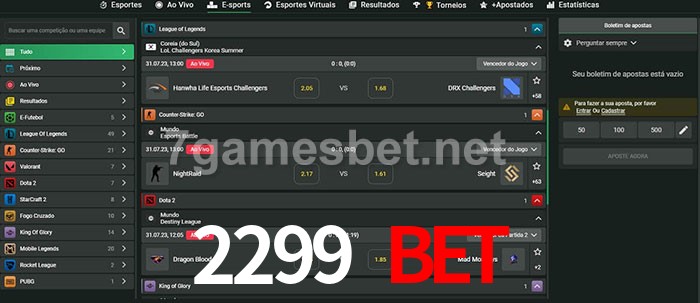 O 2299 Bet oferece uma grande seleção de opções de apostas em e-sports com probabilidades competitivas